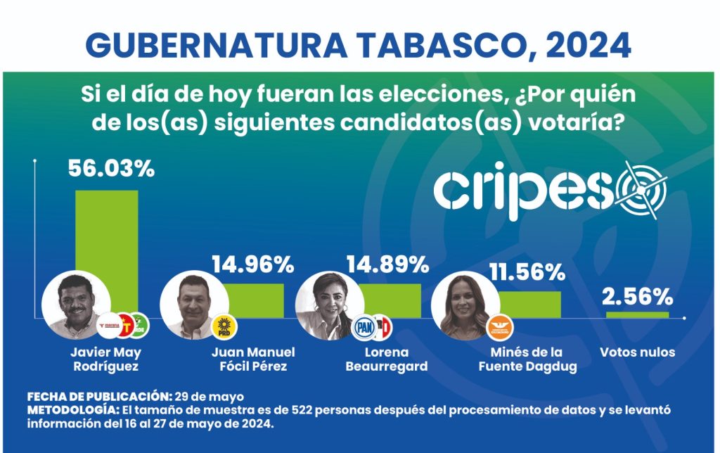 CRIPESO DA A CONOCER SU ENCUESTA NÚMERO #1 RUMBO A LA GUBERNATURA DE TABASCO