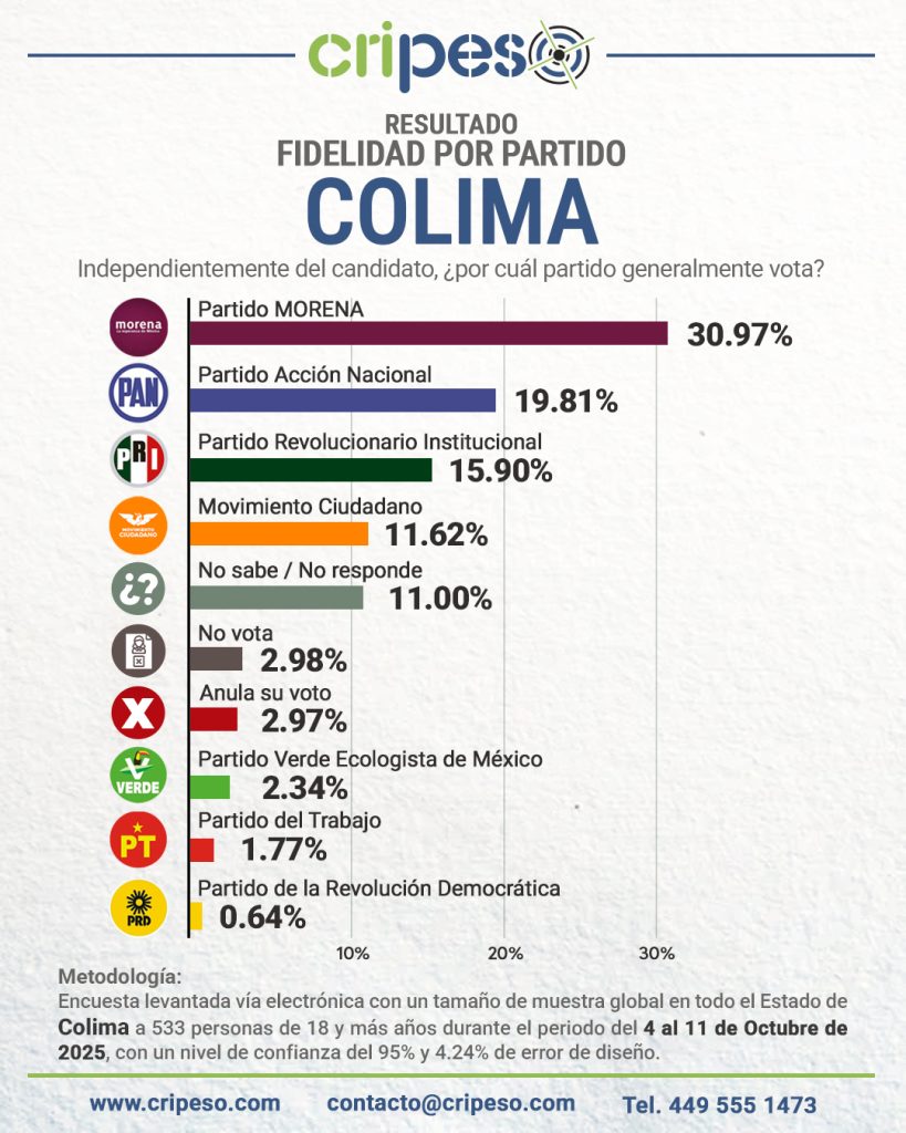 De esta manera, esta investigación presenta los resultados más recientes. Este análisis inicial es fundamental para entender el panorama político actual en Colima. La información se levantó del 4 al 11 de octubre de 2025.
